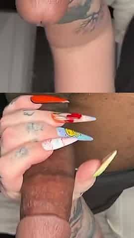 Black Cutie ally jerks him off with her feet
