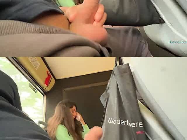 Thrilling public tugjob on the bus