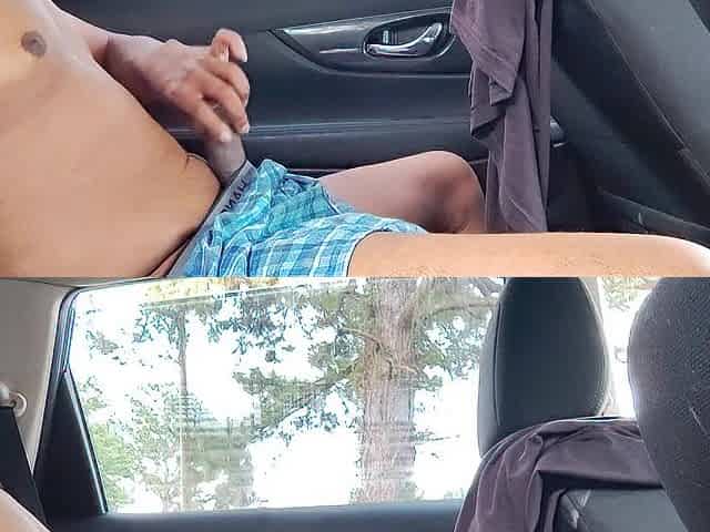 Jerk off in parking car by the side of the road public