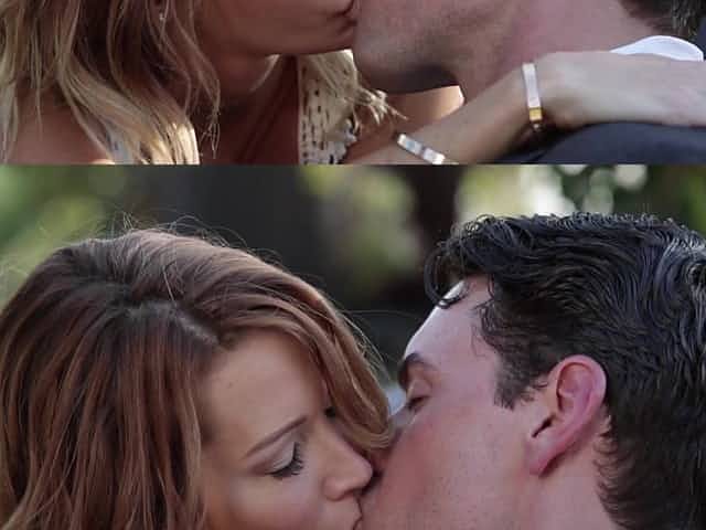 Asa Akira and Jessica Drake kissing and teasing their lusty fuckers