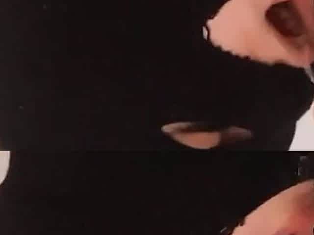 Sloppy Blowjob in Mask - Lots of Cum on Face