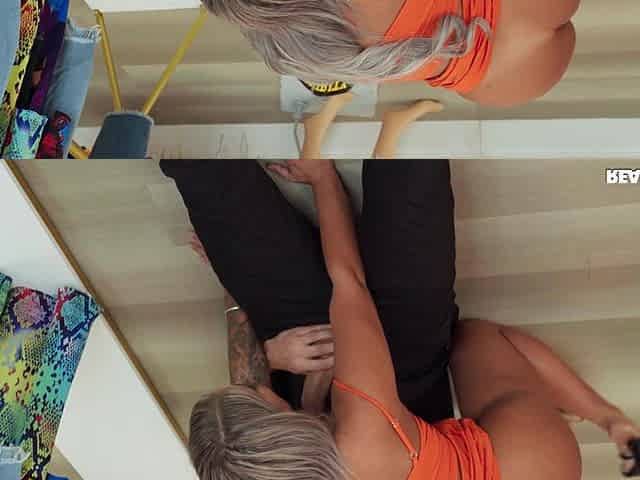 Glamorous blonde MILF sucks JMac’s cock and gets screwed in the kitchen