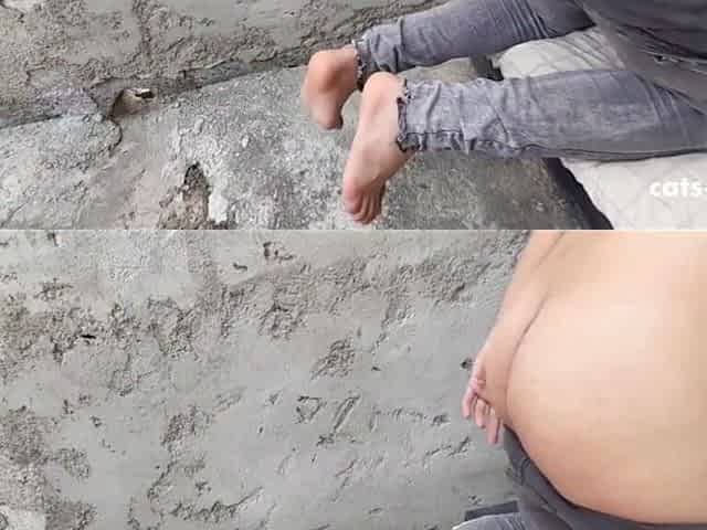 Exhibitionist babe goes outside in fishnet bodysuit to fuck