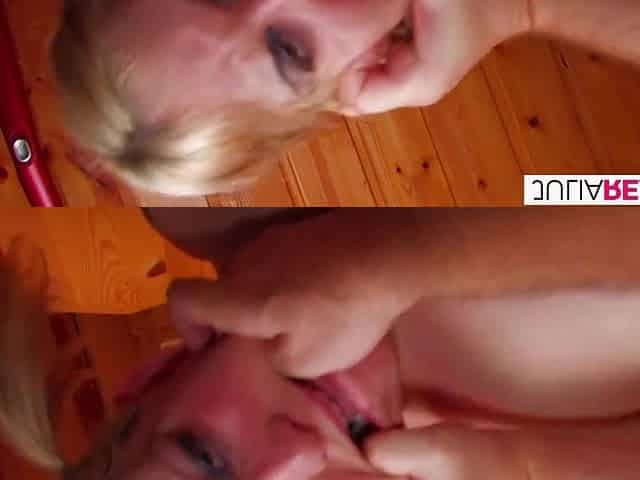 Amateur blonde teasing and toying Julia Reaves