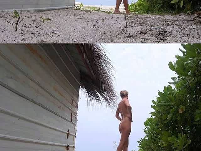 Blonde Solo Girl in the Jungle Strips by the Ocean