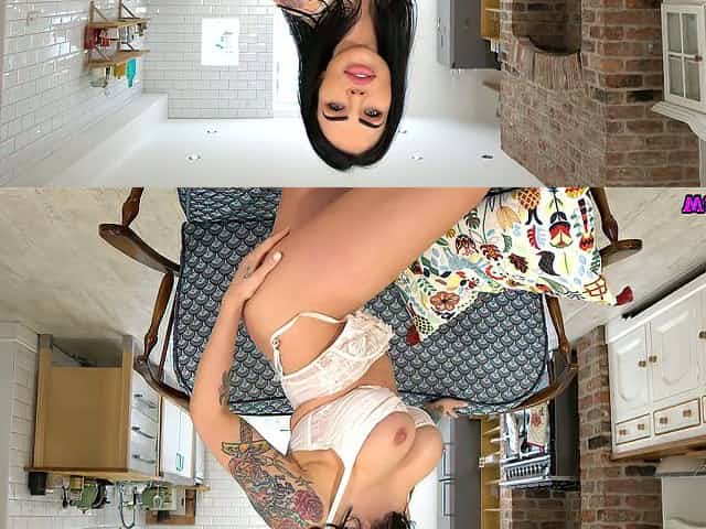 Alone tattooed busty lady Maxi Rhodes gonna striptease just for your pleasure