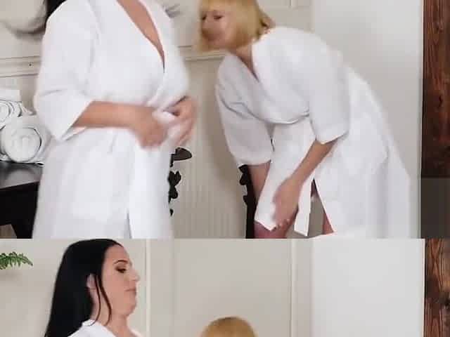 Angela White and Kate England scissoring after a hot massage