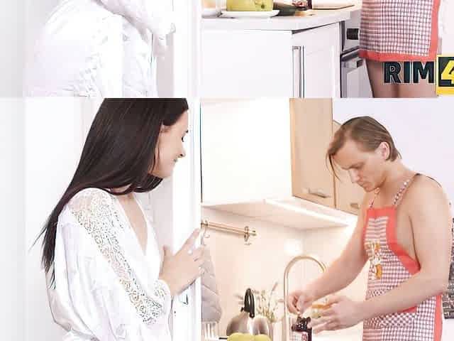 Kitchen action with Kate Rich giving her best to satisfy her man