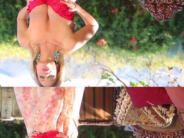 Kelly Madison takes off her red outfit for an outdoor masturbation