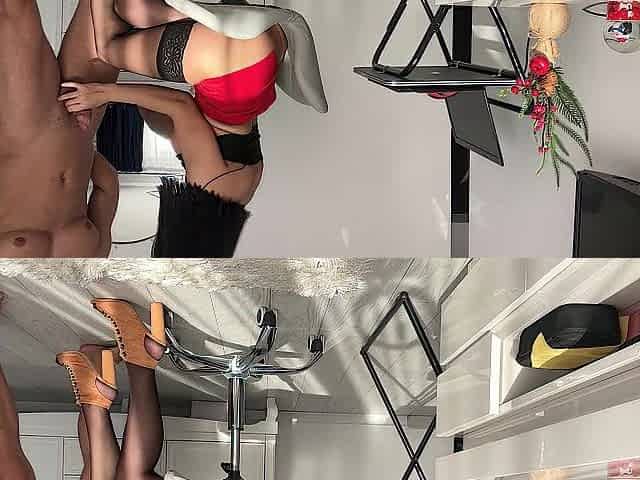 Screwing on the couch in robber mask