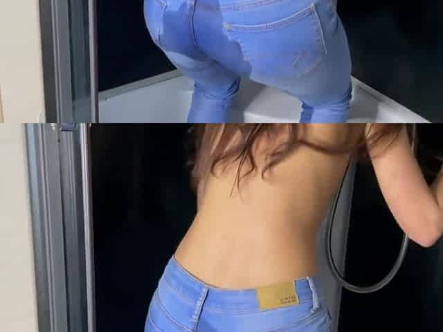 Exhibitionist Hotwife trying on her fresh pants and underware