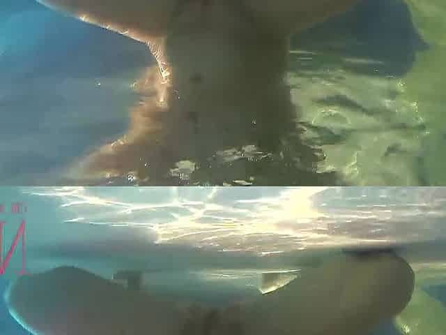 Elegant and supple honey, swimming underwater in the outdoor swimming pool. two two