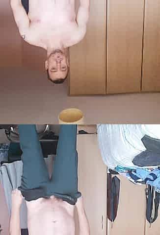 Slutty male enjoys licking his feet and legs