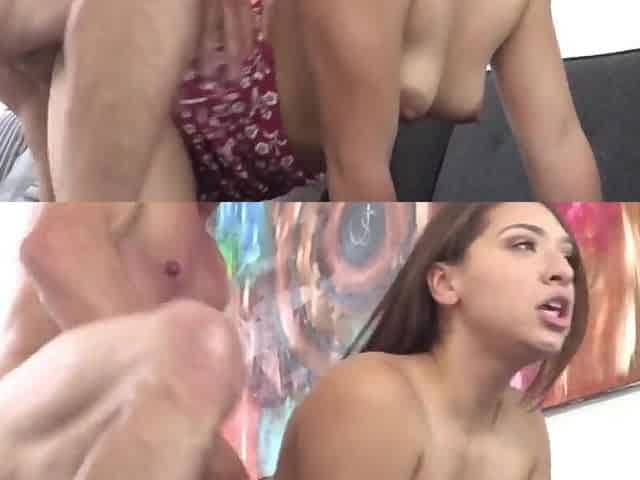 A Kinky Brunette Teen Handling Two Cocks on Cam for the First Time