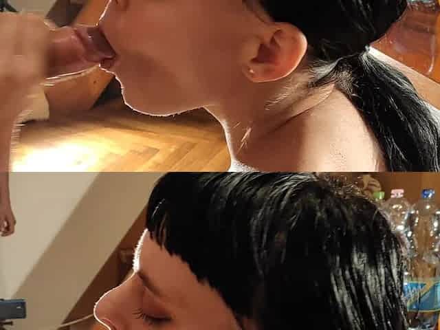 Naughty dame's blowjob action