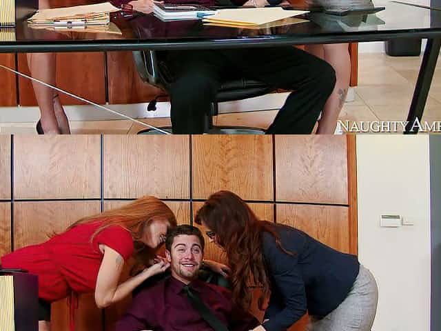 Duo of sexy skilled mommies please horny boss Seth Gamble with solid BJ