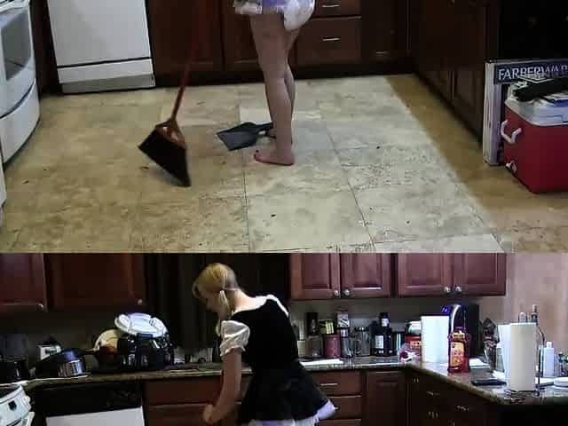 Mandie: Diapered Maid Cleaning Kitchen