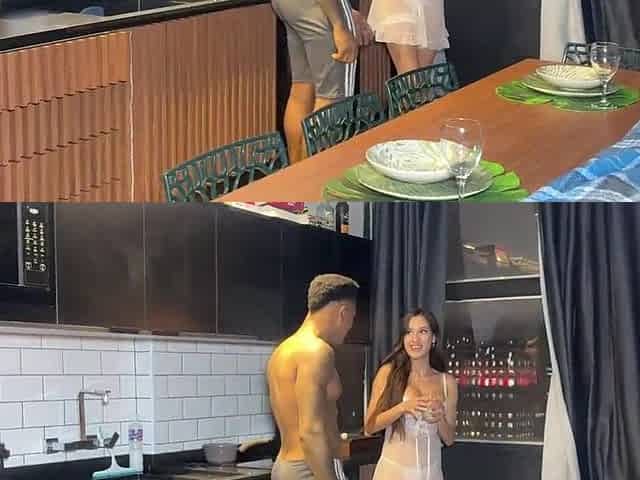 Sexy Pair Kitchen Water Fight Leads to Squirting Bang - Mav &