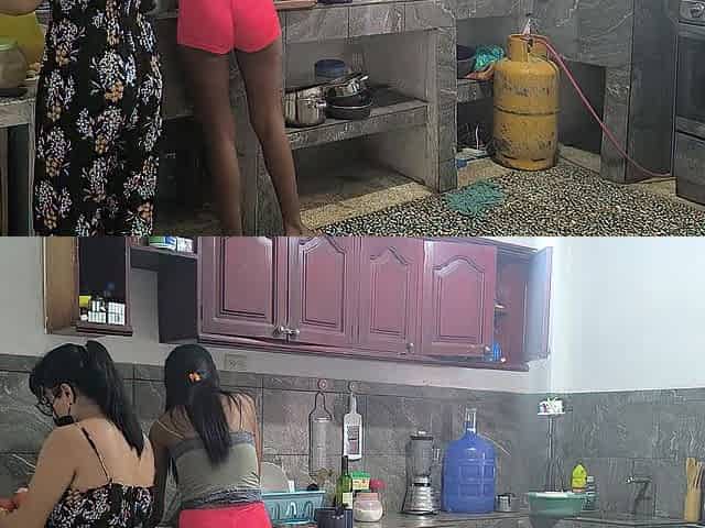 I Fuck with Her BF While Shes Distracted in the Kitchen... She Then Eats My Pussy Fill of His BF Dick