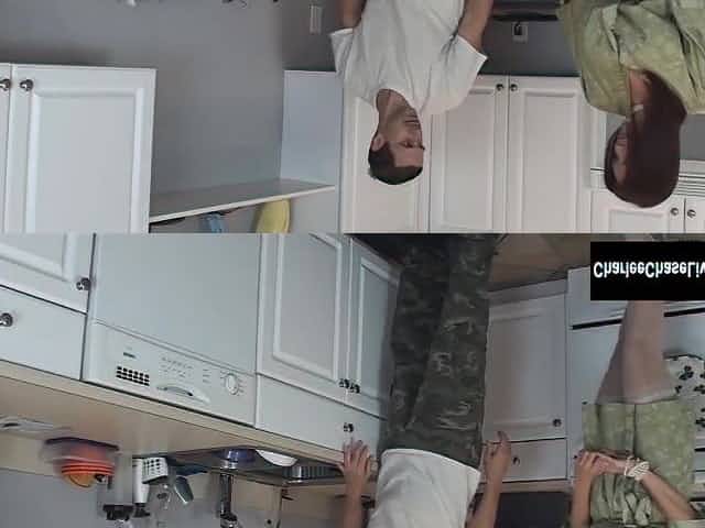 Naughty couple having sex in the kitchen on spy cam