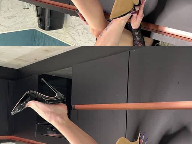 Black Classic Stiletto High Heels with No Back, 12 Cm Heels on Me, Leather Skirt Walking and Dangling