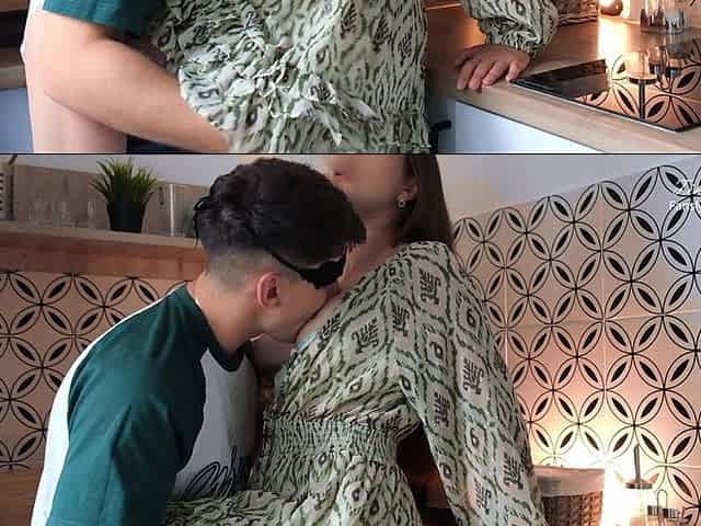 Cock hungry stepmom gets banged in the kitchen by nerdy stepson