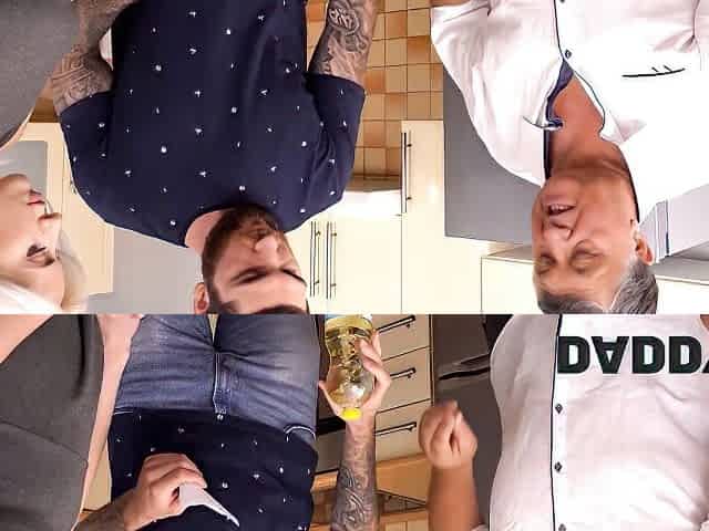 Busty sweet blonde Alexis Fawx enjoyed nasty 3 some with her kinky BF and her slutty kooky at kitchen