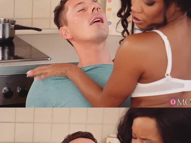 Interracial fucking in the kitchen with ebony model Kiki Minaj