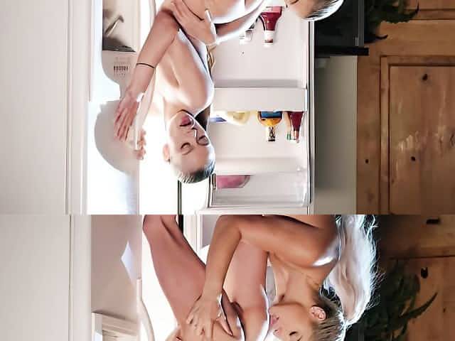 In the kitchen, hot babes Trinity St Clair and April Oneil fulfill their fantasies