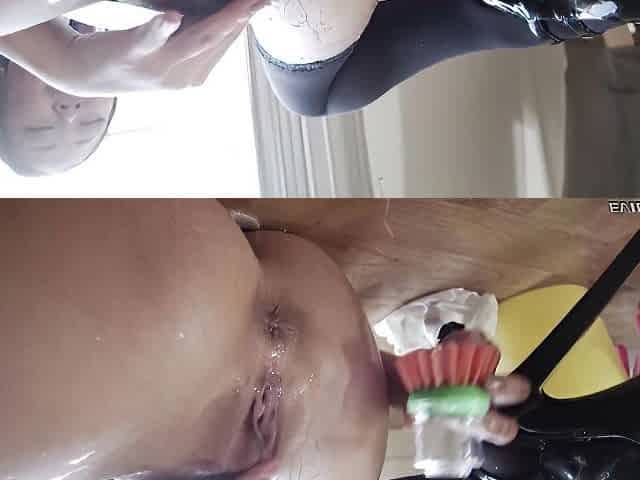 Weird kitchen toy in her pussy vagina