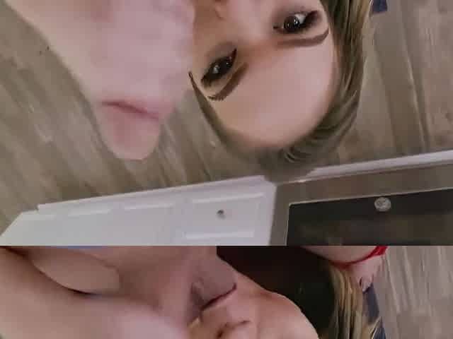Wicked blond is secretly sucking her superlatively good ally's knob and getting banged hard, in the kitchen