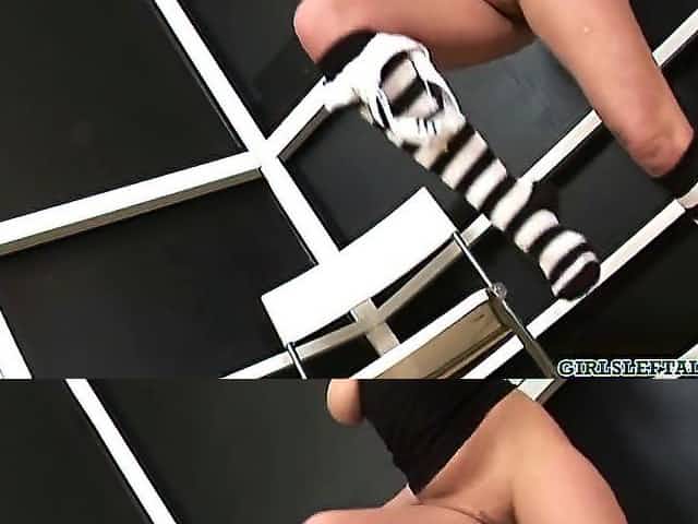 Leggy Kitty Jane hidding nylons in her cunny