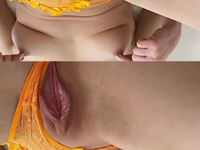 Horny College Student Small Breasts Masturbation Through Panties Big Naughty Petite Labia Lips