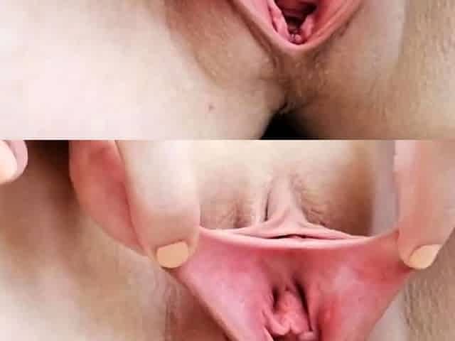 Pink labia close up of naive brunette