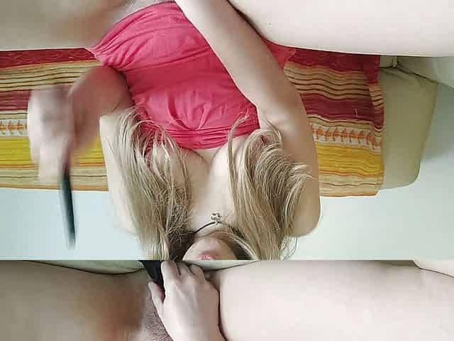 Stepmom showed stepson pussy tits clit nipples. Then got up doggy stile, he put his cock in pussy, fucked and cum on labia