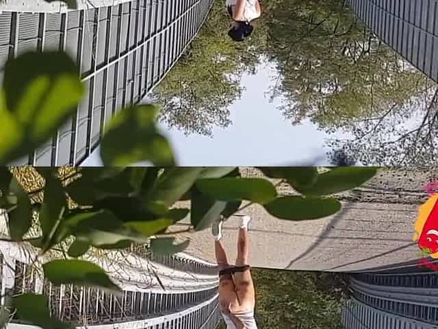 Outside teasing my neighbour who was peaking through the fence.