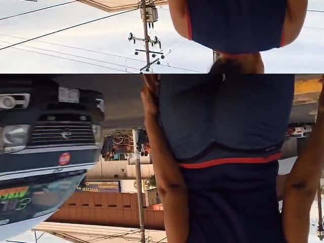 G-string panty of a hot lady seen in free upskirt video