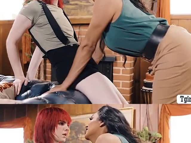 TS lesbians sucking before sex in interracial couple