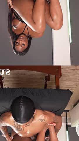 Pornstar pussy fucks ebony girlfriend after massage and sucks cock