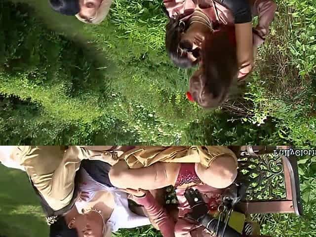 Laetitia takes 2 cocks in country side