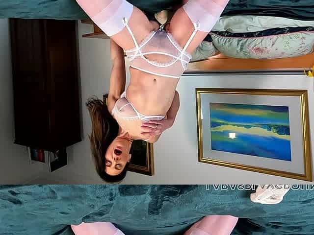 Sexy solo mature Lara Latex in white lingerie and stockings