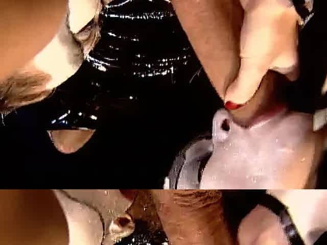 Latex kitty cat girl fucked in threesome