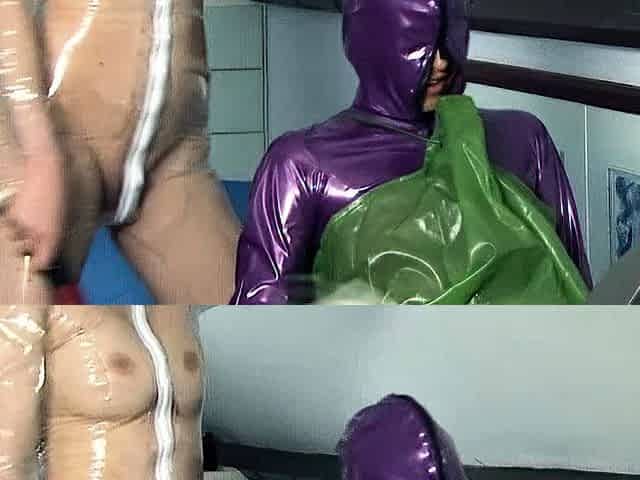 He fucks his girlfriend wearing a very fetish green latex costume.