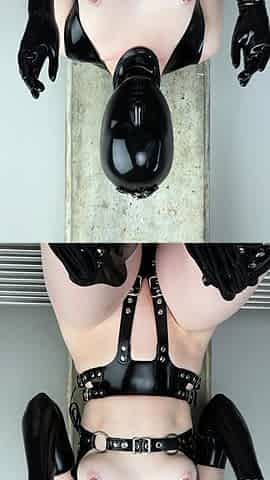 Latex kitty enjoys anal bang machine