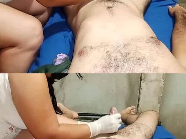 Small titted handjob lovers jerk cock