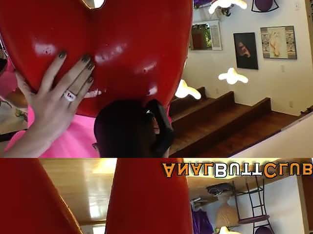 Kinky latex girl stretching her ass with huge toy