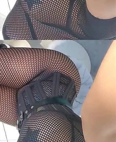 Anal queen in fishnets without panties and bra showing body