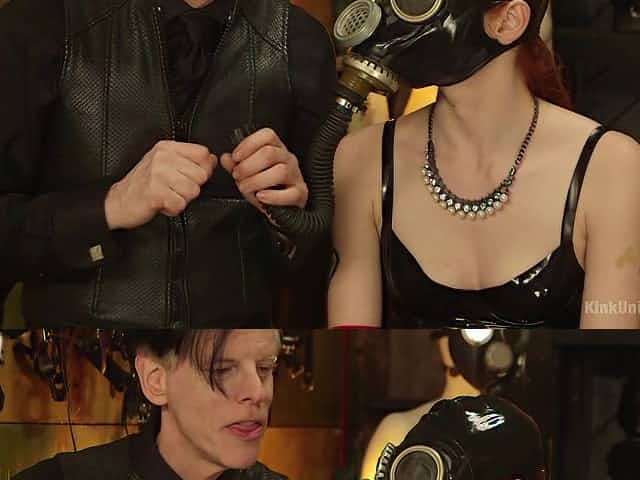 Beautiful girl in a latex mask enjoys her master's kinky games