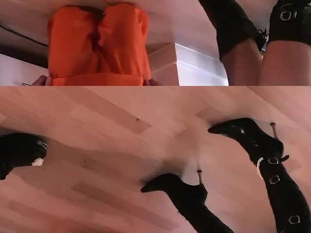 Slave Cums on Boots and Licks Sperm