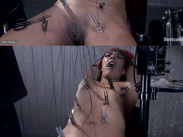 Lesbian BDSM Chained and Electro Tortured MILF Slave